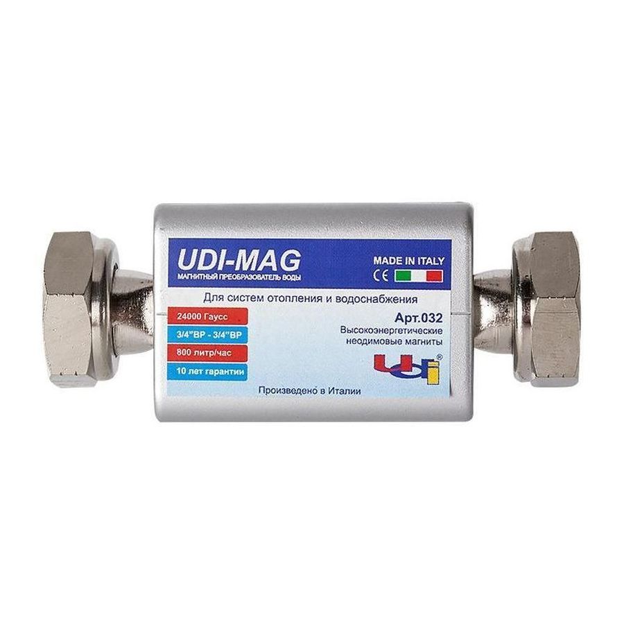 ОписаниеМагнитный преобразователь воды UDI-MAG, арт.030. Самая "ходовая" модель среди проточных. Удлиненный корпус преобразователя вмещает большее число мощных неодимовых магнитов. Суммарная мощность возрастает и повышает качество обработки воды. Чем дольше накипь не образуется в водонагревателе, тем реже надо обращаться в сервисный центр за ремонтом оборудования. Модель рекомендуется для техники средней мощности, до 24 кВт.